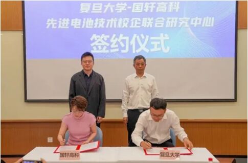 8月9日,復(fù)旦大學(xué)-國(guó)軒高科先進(jìn)電池技術(shù)校企聯(lián)合研究中心(以下簡(jiǎn)稱“聯(lián)合研究中心”)在復(fù)旦大學(xué)江灣校區(qū)正式成立并授牌。根據(jù)約定,雙方圍繞鈉離子電池、隔熱材料、LMFP材料等先進(jìn)材料和電池技術(shù)等項(xiàng)目開展聯(lián)合研發(fā)與交流。中國(guó)科學(xué)院院士、復(fù)旦大學(xué)校長(zhǎng)助理兼科研院院長(zhǎng)馬余剛 、國(guó)軒高科國(guó)際業(yè)務(wù)執(zhí)行總裁程騫代表雙方為聯(lián)合研究中心揭牌。中國(guó)科學(xué)院院士、復(fù)旦大學(xué)光電研究院院長(zhǎng)褚君浩表示,這是一次意義深遠(yuǎn)、強(qiáng)強(qiáng)聯(lián)合的合作,期待聯(lián)合研究中心可以成為我國(guó)先進(jìn)電池技術(shù)原始創(chuàng)新策源地和高水平應(yīng)用型人才的"孵化器"。