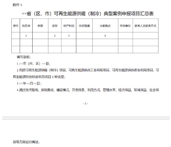 1.××省(區(qū)、市)可再生能源供暖(制冷)典型案例申報(bào)項(xiàng)目匯總表