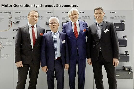 從左至右:Michael Pfister, 德國倍福自動化有限公司驅(qū)動技術(shù)產(chǎn)品經(jīng)理;Erwin Fertig,F(xiàn)ertig Motors 公司董事總經(jīng)理兼聯(lián)合創(chuàng)始人之一;Hans Beckhoff,德國倍福自動化有限公司所有者兼總裁以及第二位 Fertig Motors 公司創(chuàng)始人;Dietmar Hamberger,于 2018 年 2 月 13 日新生產(chǎn)線正式啟動生產(chǎn)之日起擔(dān)任 Fertig Motors 公司總經(jīng)理。