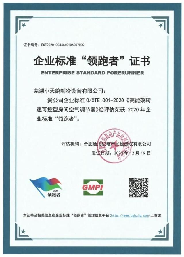 會(huì)上還重點(diǎn)發(fā)布了2020年企業(yè)標(biāo)準(zhǔn)“領(lǐng)跑者”名單,頒發(fā)企業(yè)標(biāo)準(zhǔn)“領(lǐng)跑者”相關(guān)證書,美的空調(diào)產(chǎn)品共5項(xiàng)企標(biāo)入選領(lǐng)跑,涵蓋了169款新能效產(chǎn)品,是行業(yè)中入選產(chǎn)品最多的企業(yè)。其中,企標(biāo)Q/MDL 072-2020《高能效轉(zhuǎn)速可控型房間空氣調(diào)節(jié)器(23XT101)》為行業(yè)最高能效領(lǐng)跑者標(biāo)準(zhǔn)。 Q/MDL 072-2020《高能效轉(zhuǎn)速可控型房間空氣調(diào)節(jié)器(23XT101)》 Q/MDL 047-2020《高能效轉(zhuǎn)速可控型房間空氣調(diào)節(jié)器》 Q/KM 1001-2020《高能效轉(zhuǎn)速可控型房間空氣調(diào)節(jié)器》 Q/GZHL 002-2020《高能效轉(zhuǎn)速可控型房間空氣調(diào)節(jié)器》 Q/XTE 001-2020《高能效轉(zhuǎn)速可控型房間空氣調(diào)節(jié)器》