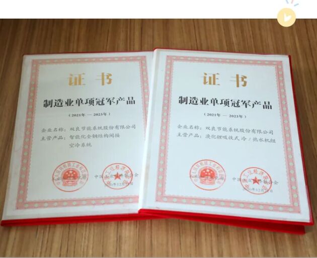 近日雙良收到一份特殊"禮物" 兩本中國制造業(yè)單項冠軍產(chǎn)品證書 由工信部、中國工業(yè)經(jīng)濟聯(lián)合會共同頒發(fā) 對中國制造企業(yè)來說這是至高的榮譽