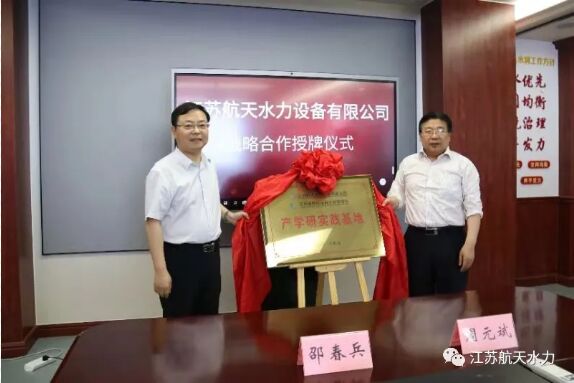 5月28日,江蘇航天水力設(shè)備有限公司產(chǎn)學(xué)研實踐基地簽約授牌儀式在江蘇省駱運水利工程管理處皂河站舉行。
