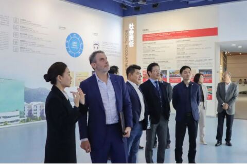 4月6日,德國萊茵TüV集團(以下簡稱“TüV萊茵”)全球產(chǎn)品服務(wù)執(zhí)行副總裁Kimmo Fuller一行赴正泰新能源杭州園區(qū)走訪交流。正泰新能源董事長兼總裁陸川熱情接待。