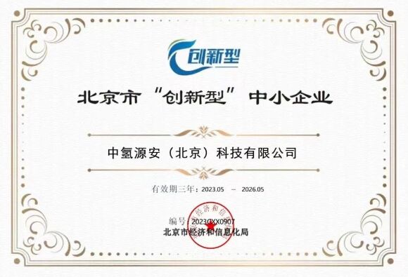 5月23日,近日,中氫源安(北京)科技有限公司成功通過2023年度北京市創(chuàng)新型中小企業(yè)的認定。