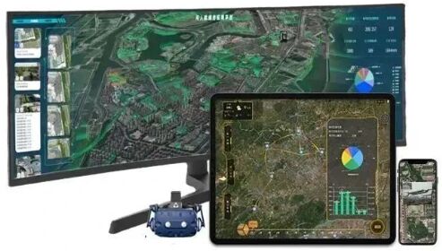 無人機搭載激光點云吊艙、高清可見光吊艙,從全自動機場自動起飛,自主飛行,完成地表基礎(chǔ)數(shù)據(jù)自動采集,數(shù)據(jù)實時回傳至云端平臺自動進行解算、處理,快速構(gòu)建高精度三維實景模型和三維激光點云模型,通過無人機自主建模技術(shù)奠定數(shù)字孿生技術(shù)應(yīng)用基礎(chǔ)。