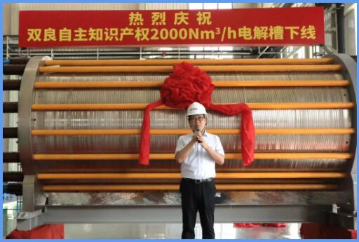 9月8日,在雙良綠電智能制氫裝備車間,自主知識產權2000Nm³/h電解槽成功下線,刷新了此前同產品的最大制氫量記錄,彰顯了雙良在大型電解槽系統設計與制造方面的實力,標志著雙良氫能產業(yè)向前再邁進堅實一步。