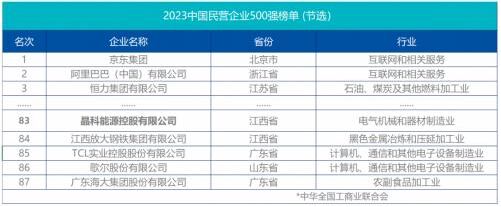 “中國民營企業(yè)500強”是中華全國工商業(yè)聯(lián)合會2010年起主辦的發(fā)布活動,榜單是由全國工商聯(lián)經(jīng)上規(guī)模民營企業(yè)調(diào)研,按照企業(yè)營收總額降序排列產(chǎn)生,是中國民營經(jīng)濟領(lǐng)域最全面且權(quán)威的榜單。晶科能源能夠連續(xù)十年上榜,在充分佐證公司實力的同時,也彰顯了作為光伏頭部企業(yè)對行業(yè)升級發(fā)展的卓越貢獻。