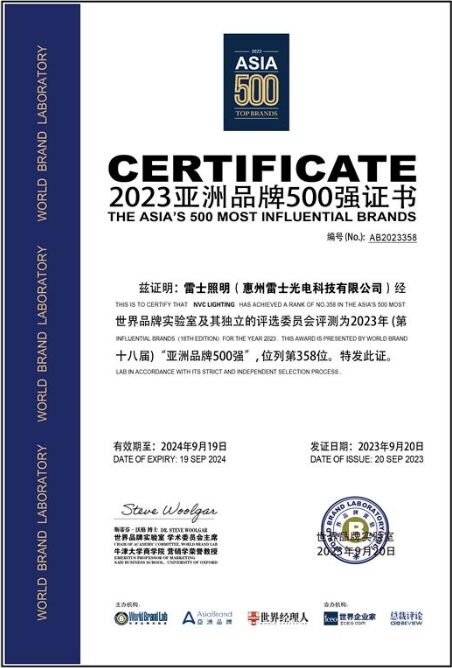 近日,由世界品牌實(shí)驗(yàn)室(World Brand Lab)主辦的“亞洲品牌大會(huì)”正式發(fā)布2023年《亞洲品牌500強(qiáng)》排行榜,雷士照明與華為、海爾、騰訊等各行業(yè)頭部品牌一同上榜,位列榜單第358位,再次彰顯雷士照明在行業(yè)里無可比攀的品牌價(jià)值和雄厚的品牌實(shí)力。