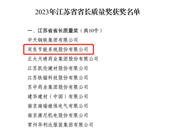 近日,2023年江蘇省省長質(zhì)量獎獲獎名單正式公布,雙良節(jié)能系統(tǒng)股份有限公司憑借多年來在踐行綠色發(fā)展和推動高質(zhì)量發(fā)展方面的堅守與擔(dān)當(dāng),贏得了江蘇省人民政府的肯定與嘉獎,榮獲2023年江蘇省省長質(zhì)量獎。