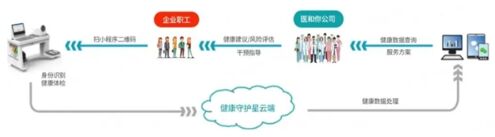 健康驛站-健康守護(hù)星的體驗(yàn)流程為:員工自助掃描二維碼,根據(jù)手機(jī)端微信小程序和平板電腦的指引開始體檢;體檢結(jié)束后,云端對(duì)用戶的健康數(shù)據(jù)進(jìn)行處理,從而對(duì)異常數(shù)據(jù)提出預(yù)警;醫(yī)和你通過接口調(diào)取用戶的健康數(shù)據(jù)進(jìn)行分析評(píng)估和干預(yù)服務(wù),根據(jù)給企業(yè)提供的服務(wù)方案提供服務(wù)。