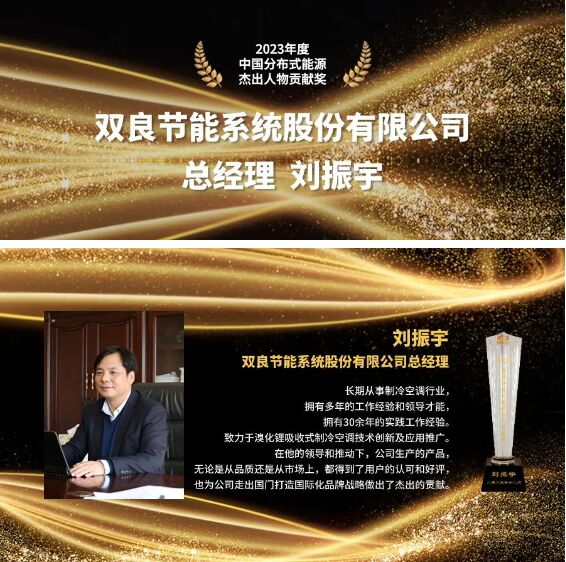 雙良節(jié)能系統(tǒng)股份有限公司總經(jīng)理劉振宇榮獲“中國分布式能源杰出人物貢獻(xiàn)獎”殊榮。
