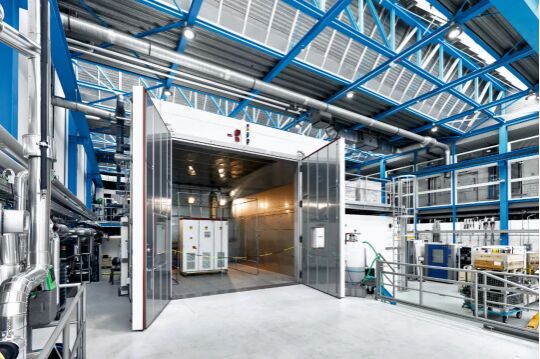 任何一個站在 10 MW 風(fēng)力發(fā)電機(jī)組面前的人都會對其所使用的電力電子器件的尺寸有一個清晰的概念。人工氣候室體積也非常大,超過 170 立方米,準(zhǔn)確地說,是 7.5 x 5.3 x 4.3 米。科研人員將電力電子器件與控制柜組裝在一起,并將其連接到負(fù)載換相變流器和配備基于 PC 的控制技術(shù)的第三方控制裝置。然后才能在所有已知和可以想象的氣候條件開始實際測試:可能是 -40 到 +120°C 的干冷或干熱或者 +10 到 +95°C 的溫度范圍內(nèi)相對濕度在 10-95% 之間的濕冷或濕熱條件。動態(tài)、可重復(fù)的電力負(fù)荷曲線使得電力電子器件在相應(yīng)的氣候條件下加速老化。