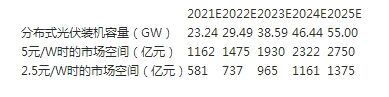 按照CPIA對(duì)分布式光伏新增容量的預(yù)測(cè),樂觀情況下,我國到2025年的分布式光伏新增裝機(jī)容量為55GW,如果按5元/W的造價(jià),到2025年,我國分布式光伏的市場(chǎng)空間將達(dá)到2750億元,呈現(xiàn)千億級(jí)的市場(chǎng)潛力,公司積極發(fā)展分布式光伏項(xiàng)目,具有較大的成長(zhǎng)空間。 樂觀情況下2021-2025年我國分布式光伏市場(chǎng)空間預(yù)測(cè)