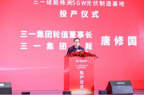 投產儀式上,唐修國董事長對湖南省、株洲市黨委和政府對5GW光伏制造基地落戶株洲的大力支持表示感謝,三一將依托工業(yè)技術和裝備、自主知識產權、工業(yè)互聯(lián)網(wǎng)平臺優(yōu)勢,持續(xù)加大對光伏產業(yè)的投入,決勝下一代電池技術。