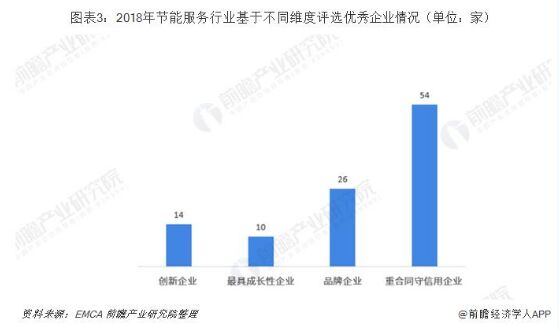 ——不同性質(zhì)企業(yè)競爭格局 節(jié)能服務公司主要以中小型的民營企業(yè)為主。然而,自國家“十一五”規(guī)劃提出節(jié)能20%的約束性指標之后,民企在節(jié)能服務市場這種一枝獨秀的狀況開始逐漸發(fā)生變化,國內(nèi)外大型企業(yè)紛紛涉足中國的節(jié)能服務市場。 一方面,國內(nèi)外節(jié)能企業(yè)合作交流加強。2017年,是深化國際交流合作的一年。中國政府積極推動并參與節(jié)能相關的國際交流活動,主要包括中美、中德、中日、中加、中瑞等。在論壇舉辦、示范項目評選、技術推廣、經(jīng)驗交流、合作簽約等方面發(fā)揮了巨大的推進作用。 另一方面,國有企業(yè)甚至是央字號國企如中國節(jié)能投資公司、國家電網(wǎng)公司、寶鋼集團、中國集裝箱集團公司等也開始紛紛躋身節(jié)能服務市場,與眾多的外資企業(yè)和民營企業(yè)展開激烈的競爭。國內(nèi)國有大型企業(yè)涉足節(jié)能服務領域改變了節(jié)能服務公司長期以來以民營成份為主的特征,提高了中國節(jié)能服務行業(yè)的整體實力和水平,同時也加劇了節(jié)能服務行業(yè)內(nèi)的競爭。 ——品牌競爭格局 2019年1月8日,中國節(jié)能協(xié)會節(jié)能服務產(chǎn)業(yè)委員會公布2018年度節(jié)能服務優(yōu)秀企業(yè)名單。基于不同維度(包括創(chuàng)新、成長性、品牌和重合同守信用等)評選出一批節(jié)能服務行業(yè)的優(yōu)秀企業(yè),其中,創(chuàng)新企業(yè)14家,最具成長性企業(yè)10家,品牌企業(yè)26家,重合同守信用企業(yè)54家。