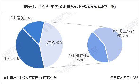 1、中國(guó)節(jié)能服務(wù)分布在工業(yè)和建筑領(lǐng)域 根據(jù)中國(guó)節(jié)能協(xié)會(huì)節(jié)能服務(wù)產(chǎn)業(yè)委員會(huì)(EMCA)2019年對(duì)合同能源管理項(xiàng)目進(jìn)行調(diào)查分析的結(jié)果顯示,按照節(jié)能三大領(lǐng)域分類(lèi),工業(yè)領(lǐng)域項(xiàng)目有項(xiàng)目總數(shù)的41%;建筑領(lǐng)域項(xiàng)目有占項(xiàng)目總數(shù)的43%,其中公共機(jī)構(gòu)建筑18%,商業(yè)及工業(yè)建筑25%;公共設(shè)施項(xiàng)目項(xiàng)目總數(shù)的16%。