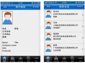 (二)商務會友 掃碼功能不僅能識別產品的二維碼,還可以拍攝參展人員或觀眾胸卡上的條形碼。只需輕輕一拍,便可獲取對方的身份信息,并自動記錄在“商務會友”里,省去交換名片的環(huán)節(jié)。(見圖3、4)
