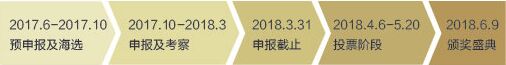 四、申報類別 產品:申報對象為廣州國際照明展同期參展企業(yè)!爱a品”一般指已經量化生產,并已進入市場的燈具。 技術:申報對象為廣州國際照明展同期參展企業(yè)!凹夹g”一般指具有前瞻性和發(fā)展性的,用于規(guī)劃和引導產品研制和應用開發(fā)的技術理念或解決方案。 工程:具有獨立法人資格的設計院(所)、設計公司,高等院校,科研單位和照明工程公司、該項目主要產品的供應商。“工程”是指申報項目已完工,無權屬爭議并且是已竣工驗收、投入使用在三個月以上的照明工程。 設計:以純粹的照明創(chuàng)意設計作品為主,探索多種光源照明在各種領域的創(chuàng)新應用。功能、形式不限,面向全 球設計師、學生進行作品征集。 注:非參展企業(yè)申報產品或技術類獎項,需符合以下條件之一: 1、申報企業(yè)為阿拉丁商城高級會員企業(yè); 2、申報項目獲得2018年評審團中三位及以上評委的推薦。 五、活動流程