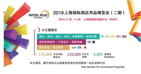 三大主題展區(qū),全面資源升級(jí)     2019新國(guó)際博覽中心再度全館齊放,打通行業(yè)壁壘,共享210,000平方米展出面積,175,000觀眾資源,近3,000家優(yōu)質(zhì)海內(nèi)外廠商。同期展會(huì)貫穿酒店工程、清潔產(chǎn)品、物業(yè)保潔、建筑裝飾、商業(yè)智能化設(shè)備等行業(yè),定位于中高端產(chǎn)品,為全球買家提供全系列解決方案和信息交流與分享的機(jī)會(huì),為酒店、餐廳、商場(chǎng)辦公樓等各類商業(yè)空間提供服務(wù)及整體解決方案的一站式采購(gòu)平臺(tái)。