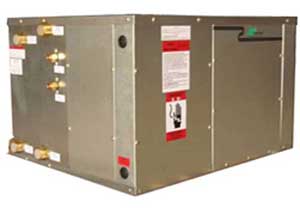 水-水式水環(huán)/水源/地源熱泵機(jī)組是以地能(地下水)或循環(huán)流動(dòng)的水或鹽水為主要能源,輔以電能,通過先進(jìn)的設(shè)備將地下取之不竭但不易利用的低品位再生能源加以開發(fā)利用,使其變?yōu)楦咂肺荒茉,同時(shí)向室內(nèi)未端供應(yīng)冷(熱)水,來達(dá)到制冷(熱)目的。